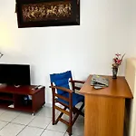 La cucina completamente attrezzata è completa di servizi per la preparazione di tè/caffè, oltre a un frigo, un tostapane e utensili da cucina, indispensabili per cucinare da soli. Quest'appartamento è a soli 250 metri dalla stazione degli autobus Tei eisodos.